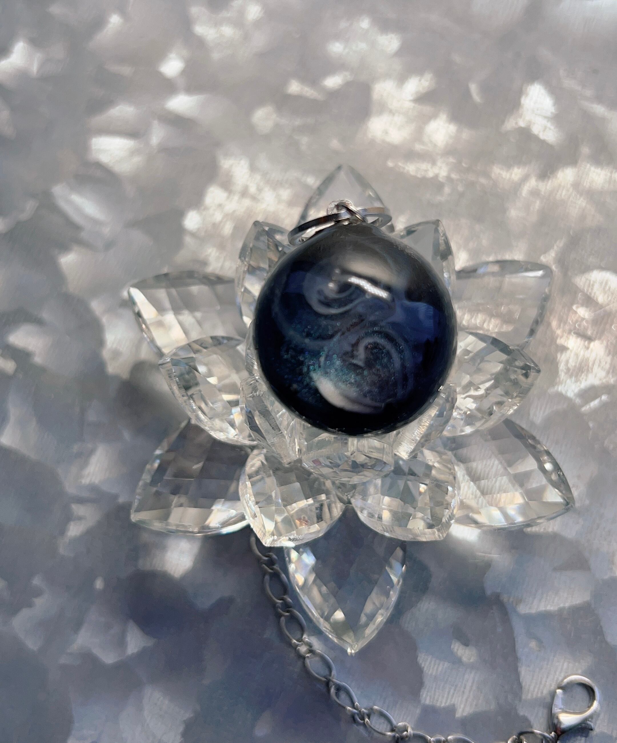 宇宙をイメージしてレジンで作ったバックチャームになります。写真は裏と表です。