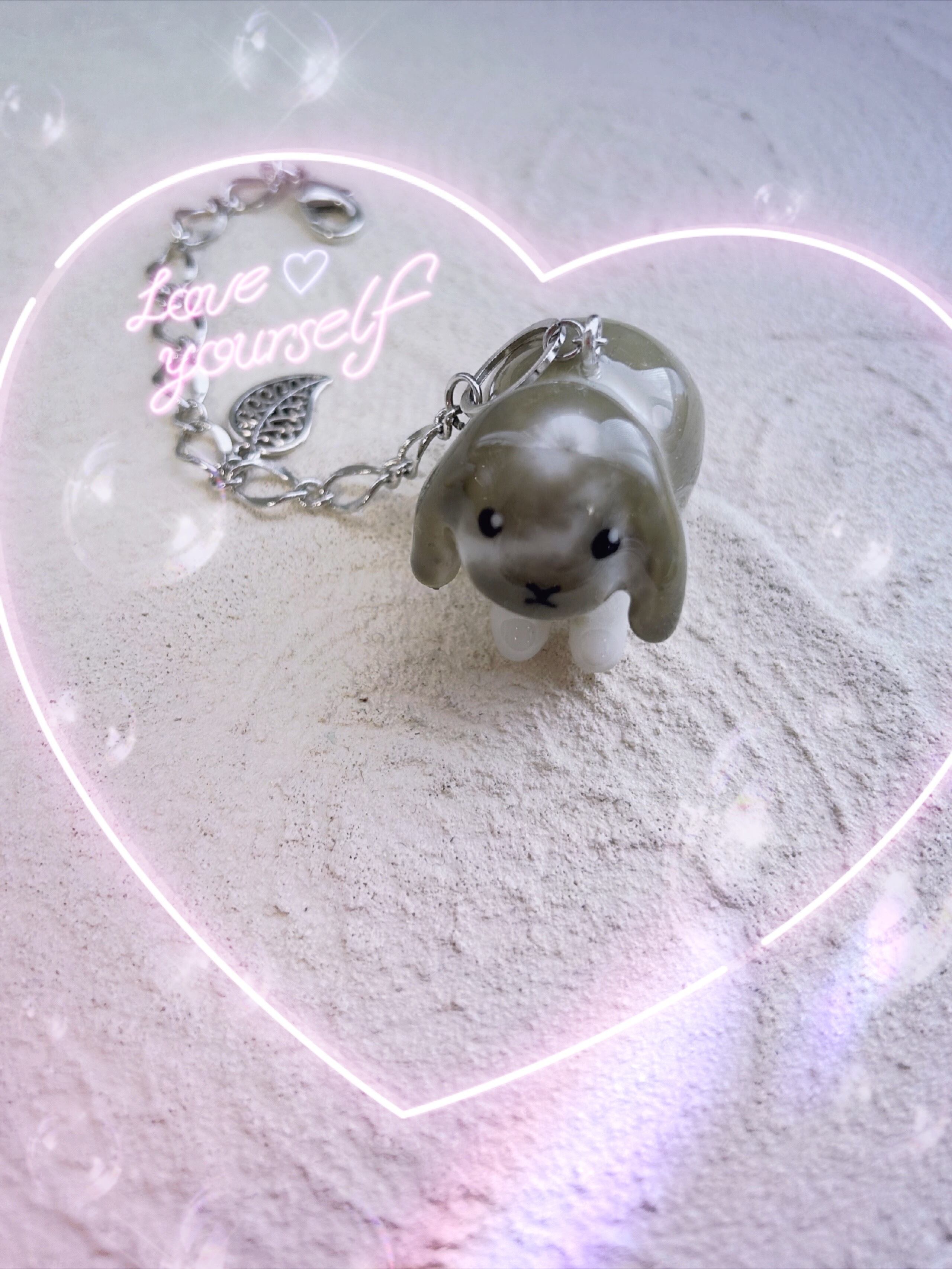 レジンで作ったうさぎのバックチャームになります。