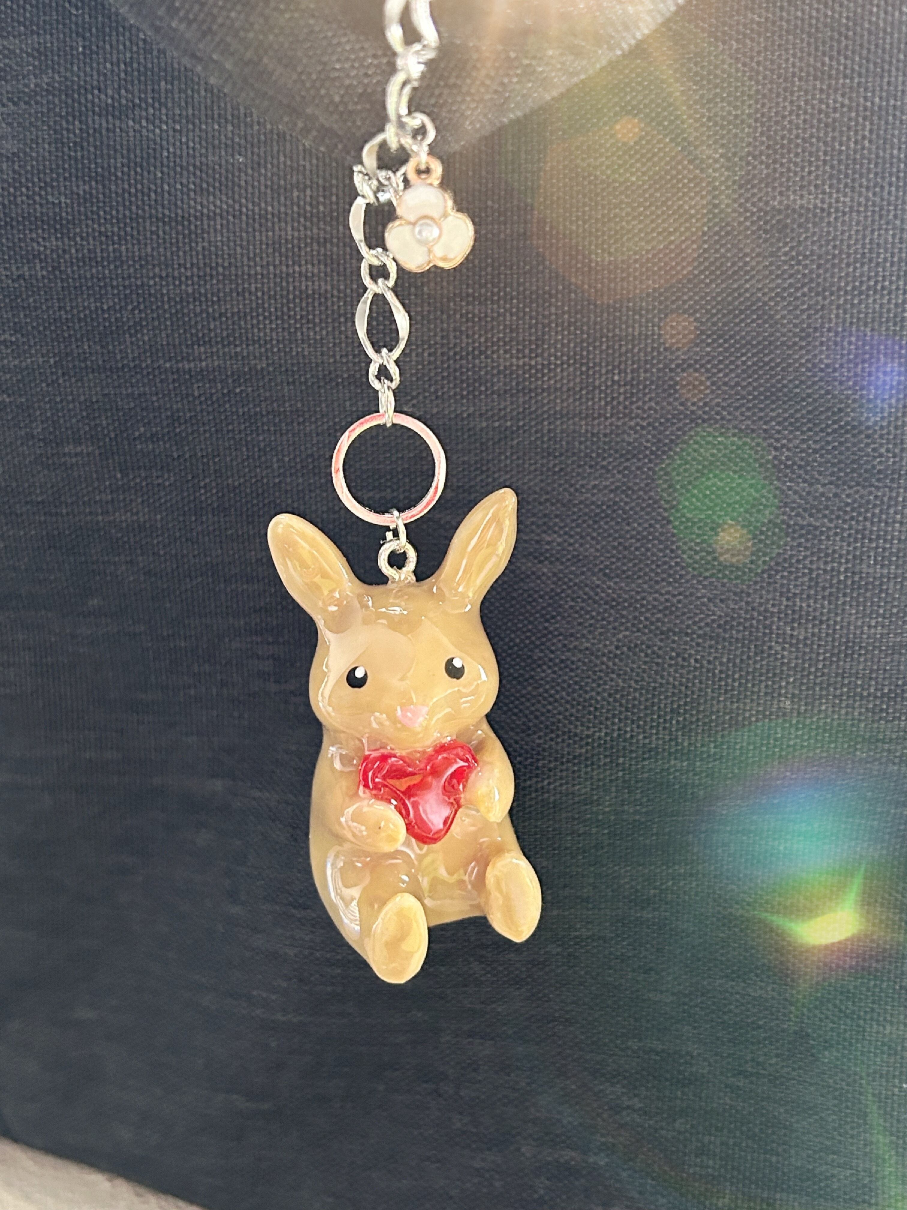 レジンで作ったウサギのバックチャームです。